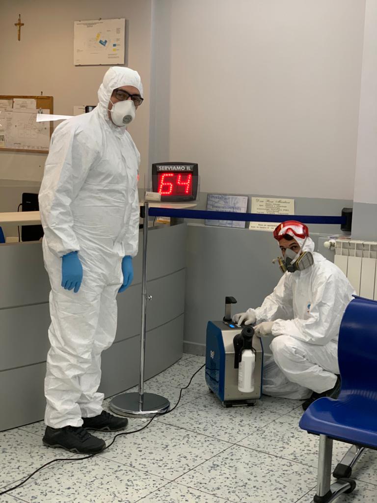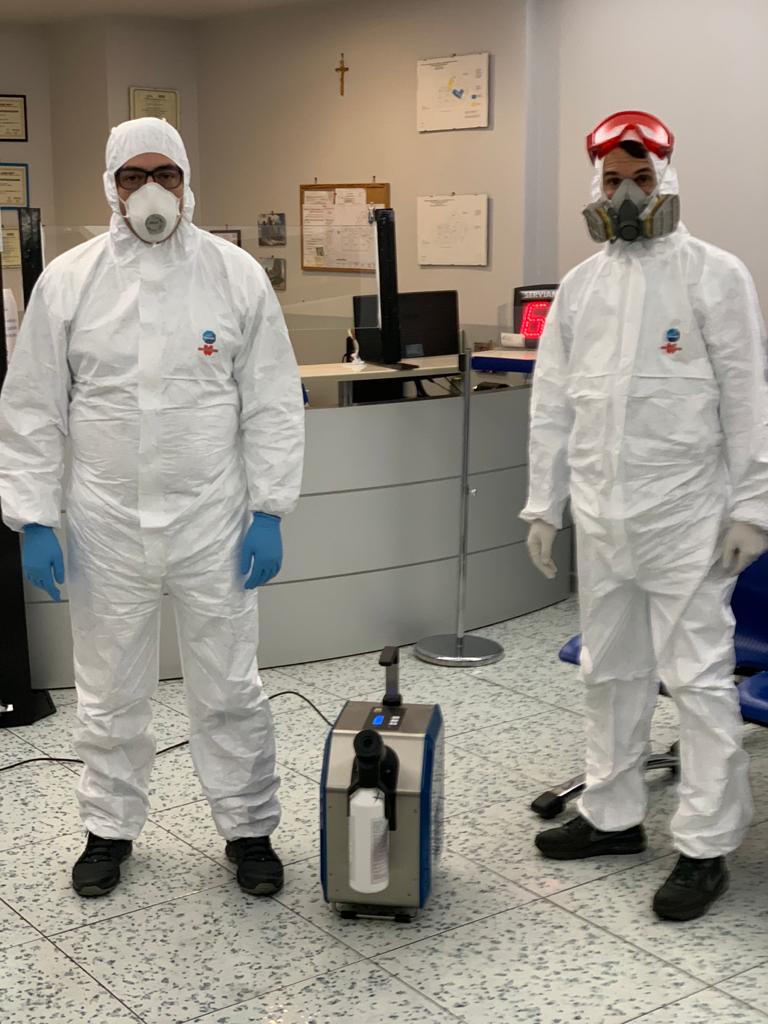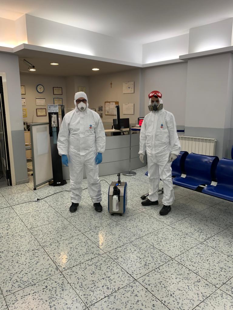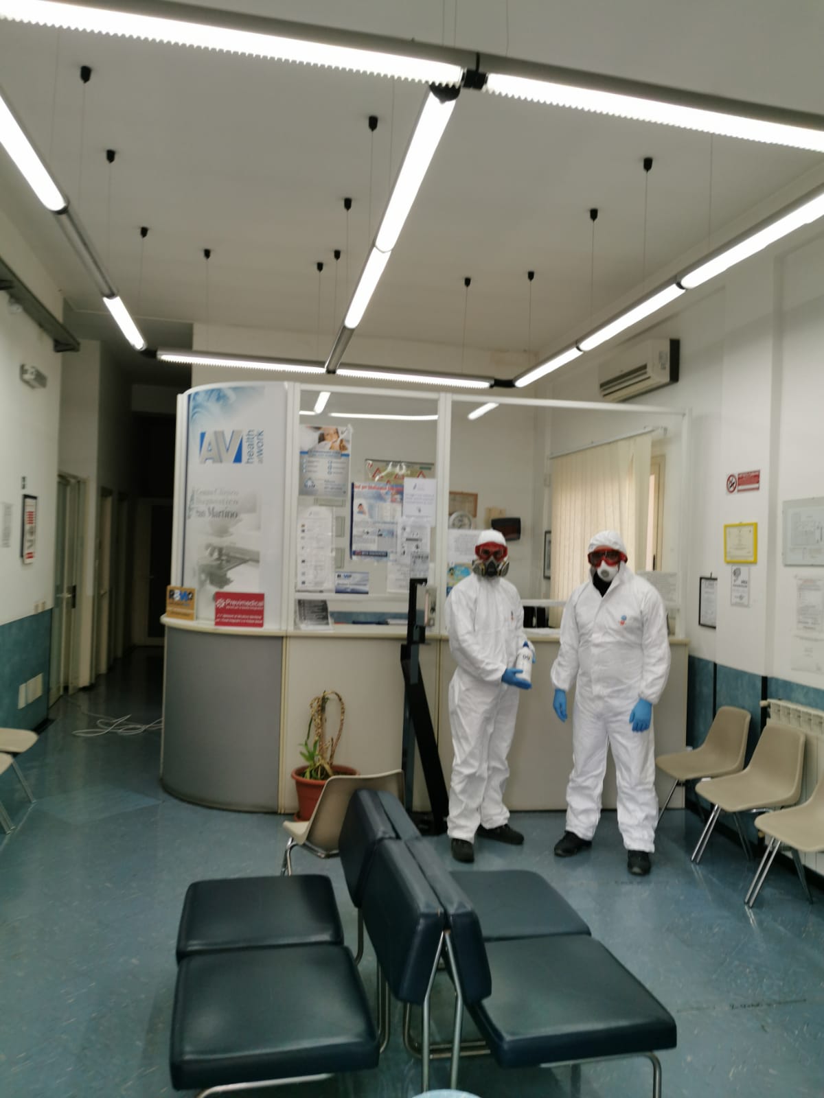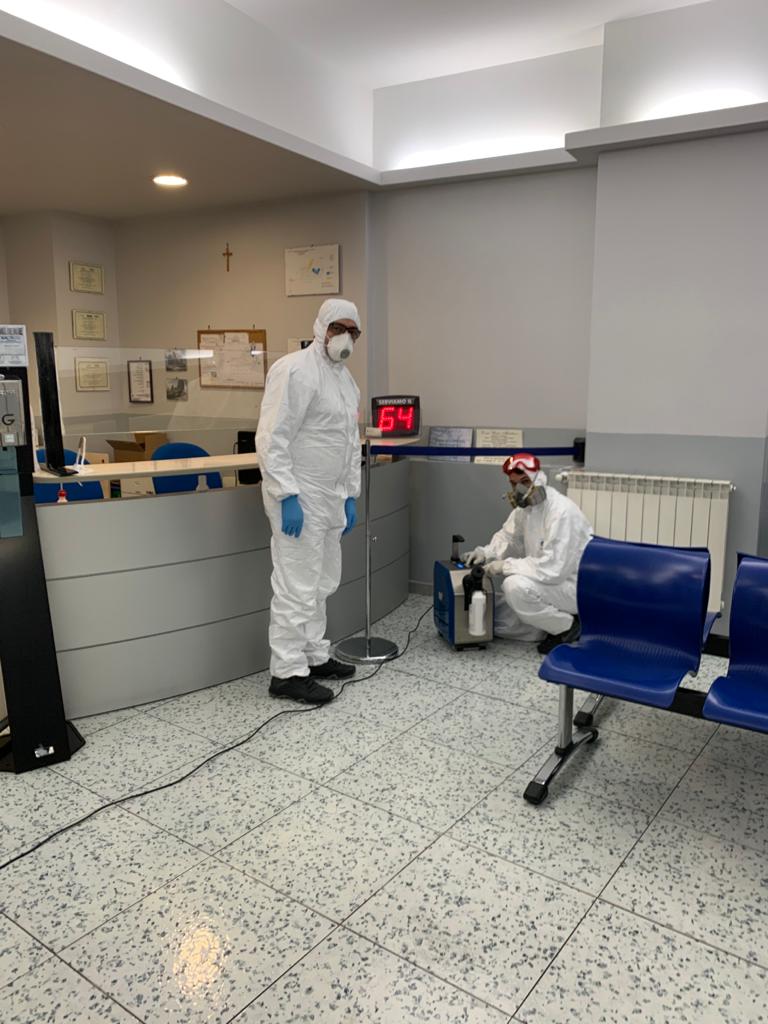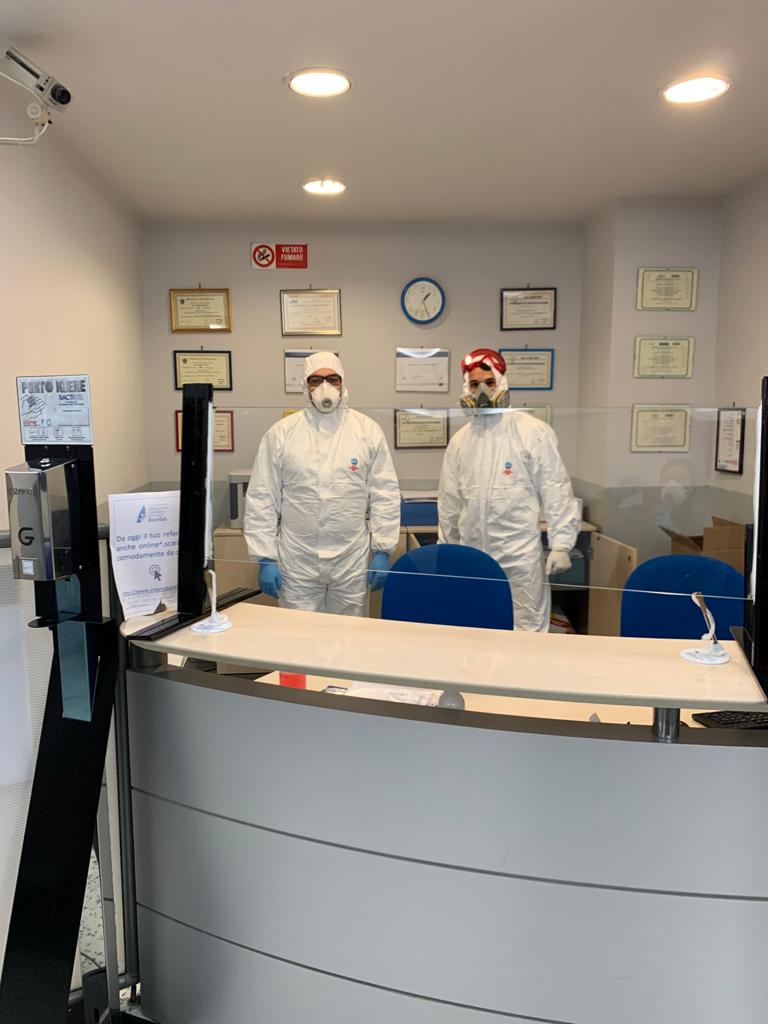 - Viene effettuata, più volte al giorno un’attenta PULIZIA e SANIFICAZIONE: Utilizziamo una procedura di sanificazione e pulizia approfondita che permette di eliminare qualsiasi microorganismo (batterio o virus) dalle superfici. ll trattamento prevede l’igienizzazione degli ambienti mirata con prodotti disinfettanti a base di cloro o alcol con efficacia biocida del desk, dell’area accettazione, di pavimenti, maniglie, scrivanie/postazioni lavorative, apparecchi telefonici e tastiere, superfici orizzontali di appoggio, lavandini e wc.